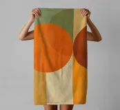 Composizione minimalista di metà secolo con forme geometriche semplici e colori accoglienti, tra cui arancione, marrone, beige e verde acqua, che evocano l'evoluzione del sole in una luminosa giornata autunnale. Con i suoi toni caldi, quest'opera d'arte retrò è in grado di ravvivare qualsiasi ambiente. Una scelta perfetta per case, uffici e hotel. Parte di un duo.