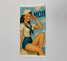 Un design marittimo ironico per chi vuole indossare "Moin mien Jung" con il sorriso sulle labbra. L'impertinente marinaio in stile streetwear vintage è perfetto per gli amanti della costa, dell'aurora boreale e per tutti coloro che vogliono il fascino del porto sulla loro camicia o felpa con cappuccio.