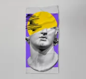 Un volto stilizzato ispirato ai busti antichi, attraversato da circuiti luminosi. Il passato incontra la tecnologia.
