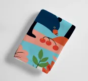 Godetevi la bellezza naturale di una foresta autunnale con questa illustrazione di un orso in cerca di cibo. I colori caldi e il design minimalista creano un'atmosfera pacifica e rasserenante.