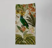 Un vivace collage di illustrazioni vintage con bellissimi e colorati pappagalli verdi appollaiati in mezzo a un lussureggiante paesaggio floreale. La scena รจ ricca di fascino tropicale ed esotico, poichรฉ i pappagalli si stagliano sullo sfondo del fogliame vibrante della giungla. Intorno a loro sbocciano incredibili fiori esotici, mentre i rami di palma aggiungono un tocco di eleganza tropicale. Sullo sfondo, una mappa d'epoca emerge dolcemente, aggiungendo un senso di avventura e di viaggio. Questa miscela armoniosa di natura, fauna selvatica e fascino vintage crea un disegno senza tempo, perfetto per gli amanti dei paesaggi esotici e dell'arte nostalgica.