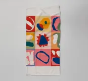 Una composizione astratta moderna e giocosa, caratterizzata da una disposizione a griglia di forme organiche e colorate. L'opera si presenta come un puzzle sofisticato ed equilibrato di forme e colori.