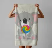 Un allegro koala con un lecca-lecca colorato. Ideale per illustrazioni a misura di bambino su dolci, animali e momenti felici. Koala giocoso in stile infantile Lecca-lecca a spirale colorato con i colori dell'arcobaleno Colori tenui e linee chiare Motivo allegro e affettuoso Perfetto per i temi legati ai bambini