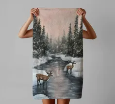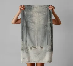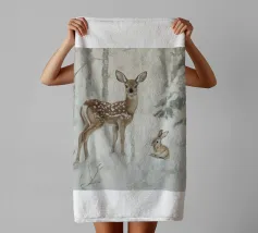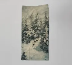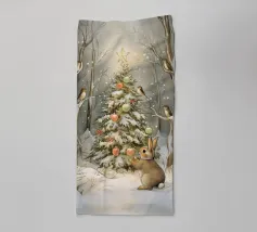 Idilliaco poster invernale con due conigli seduti in una foresta innevata. I fiocchi di neve che cadono dolcemente e i maestosi abeti creano un'atmosfera tranquilla e fiabesca. Questo murale combina motivi animali e natura invernale ed è perfetto per decorare il soggiorno, la camera da letto o la stanza dei bambini. Un'opera d'arte che porta la pace, l'intimità e la magia dell'inverno in ogni casa, ideale per gli amanti degli animali e della natura.