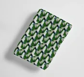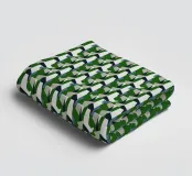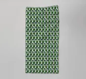 L'immagine presenta un motivo geometrico complesso e ripetuto con forme interconnesse. Una miscela di verde, nero e bianco domina la composizione, creando un effetto visivamente dinamico.