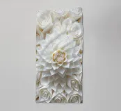 Questa opera d'arte digitale mozzafiato cattura la bellezza pura ed elegante delle rose bianche in una splendida composizione dettagliata. Il punto focale è costituito da un fiore centrale a più strati, i cui intricati petali si dispiegano per rivelare un nucleo morbido e dorato. Intorno ad esso ci sono innumerevoli altre rose, ognuna resa con dettagli squisiti, che creano un senso di profondità e consistenza. I toni incontaminati del bianco e del crema evocano sentimenti di pace, serenità e grazia senza tempo, rendendo questo pezzo perfetto per l'arredamento della casa, per i matrimoni o per qualsiasi spazio che richieda un tocco di classica raffinatezza floreale. Questo pezzo è una celebrazione