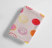 Il motivo colorato Faccine sorridenti è un semplice ma accattivante motivo luminoso nei colori rosa, arancione, giallo e rosso. Presenta molte facce sorridenti che mettono di buon umore. Motivo felice e ottimista ispirato allo stile retrò anni '70 di showmemars