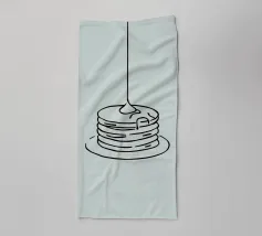 Una pila di pancake conditi con sciroppo e una guarnizione è rappresentata in uno stile minimalista di line art blu. Il design enfatizza la semplicità e le immagini a tema colazione.