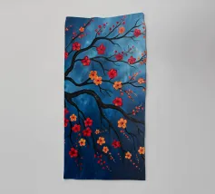 Questo affascinante dipinto a olio presenta una drammatica interpretazione astratta di un albero inghiottito da fiamme vibranti. La ricca tecnica di impasto crea un incredibile senso di consistenza e movimento, con spesse pennellate di arancioni, rossi e gialli infuocati che formano la chioma incandescente dell'albero. Il tronco e le radici scure e nodose ancorano l'inferno a un cielo cupo e tempestoso, reso con blu profondi, grigi e accenni di un minaccioso bagliore arancione all'orizzonte. Questo pezzo evoca potenti emozioni di passione, distruzione e resilienza, rendendolo un'aggiunta davvero unica e sorprendente a qualsiasi collezione d'arte.