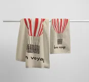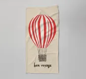 Il motivo mostra la scritta "Bon Voyage" sotto una mongolfiera a strisce bianche e rosse. Il design minimalista su sfondo beige ricorda i poster di viaggio francesi e irradia leggerezza e senso di avventura. Un murale moderno e affascinante per tutti coloro che amano i viaggi e l'avventura.