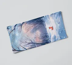 Con un sorriso giocoso, Voxy modella una piccola scultura di neve in una foresta innevata. Il blu tenue, la delicata nevicata e la simpatica energia invernale ne fanno un'illustrazione perfetta per i bambini e gli amanti delle vacanze.