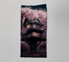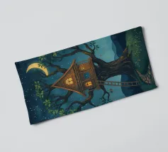 Una magica illustrazione verticale di un'accogliente pasticceria sull'albero immersa tra alberi color pastello. Ogni livello è popolato da affascinanti personaggi animali che preparano cupcake, impilano pasticcini e sorseggiano cioccolata. Con i suoi tetti di pan di zenzero, i dettagli giocosi e la calda tavolozza di toni menta, fard e miele, questa scena sembra un dolce sogno. Perfetto per le camere dei bambini, le pareti delle camerette o per chiunque ami un tocco di fantasia commestibile e di dolcezza.