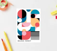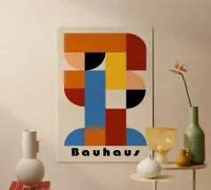 Abbracciate l'estetica iconica del movimento Bauhaus con questa vivace stampa grafica. Caratterizzata da una sorprendente composizione astratta di forme geometriche, tra cui rettangoli e archi, dai colori vivaci, disposti in una struttura a griglia, quest'opera d'arte incarna i principi del design modernista: forma, colore e composizione. Gli elementi curvi aggiungono un flusso dinamico alla composizione. La stampa include la scritta "Bauhaus" in un carattere stilizzato, che rappresenta l'influente scuola di design. Questo file di arte digitale di alta qualità vanta una straordinaria risoluzione di 7000x5000 pixel a 300 dpi, che garantisce dettagli e chiarezza eccezionali.