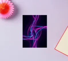 Onde colorate di luce scorrono su uno sfondo scuro, mescolando vibranti tonalità di blu, rosa e arancione in un disegno astratto ideale per applicazioni e sfondi di arte digitale moderna.