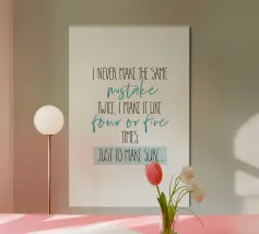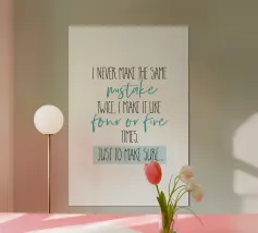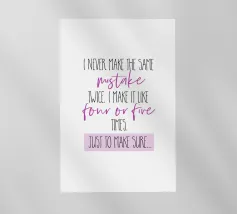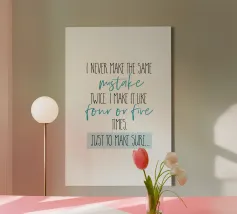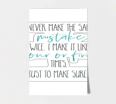 Non faccio mai lo stesso errore due volte. Lo faccio tipo quattro o cinque volte. Solo per essere sicuri... Non faccio mai due volte lo stesso errore. Lo faccio quattro o cinque volte. Solo per essere sicuro... Design tipografico moderno.