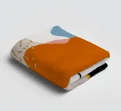 Blocchi di colore nitido in arancione, verde acqua, nero e bianco si incastrano in un gioco ritmico.