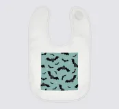 Cartoon bats with smiling faces fly across a blue-green background scattered with small stars. The playful design creates a whimsical and fun atmosphere.