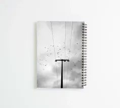 Fotografia naturalistica in bianco e nero con uccelli e traliccio dell'elettricità