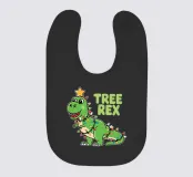 Un allegro dinosauro verde è avvolto da colorate luci natalizie e sormontato da una stella, etichettata scherzosamente come "Tree Rex".