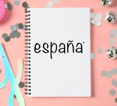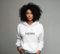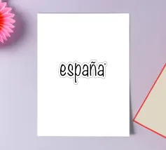 Adoro andare in Spagna. Adoro viaggiare in tutto il mondo. Adoro visitare le città, le montagne e il deserto. Tipografia in nero e bianco (trasparente). È possibile cambiare il colore dello sfondo. Poster tipografico minimalista di un viaggiatore.