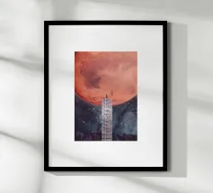 Un collage digitale surreale che mostra una persona sola seduta su una sedia ai confini del mondo, che fissa lo spazio profondo. La Terra si curva sotto di loro, una stella cadente taglia il cielo. Un momento di distacco, di allontanamento dal rumore, dal caos e dalle aspettative, per respirare e osservare l'universo.