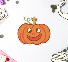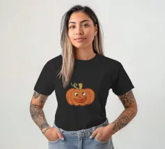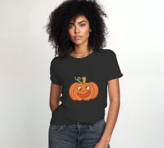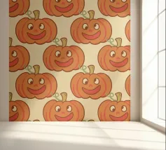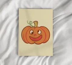 Accoglienti vibrazioni autunnali e di Halloween con questo motivo di Halloween ispirato al cottage core. Una zucca allegra e sgraziata disegnata in uno stile da cartone animato adatto ai bambini.