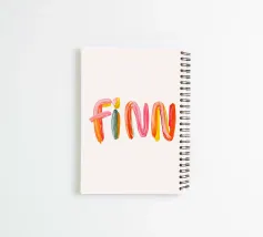 Il nome "Finn" è composto da pennellate colorate e allegre.