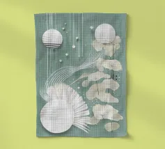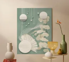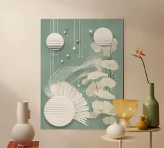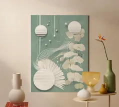 Questa serena opera d'arte astratta cattura l'essenza della calma con la sua rilassante miscela di blu e verde. Il dolce fluire delle linee crea un senso di pace e tranquillità, perfetto per aggiungere un tocco di consapevolezza a qualsiasi spazio.
