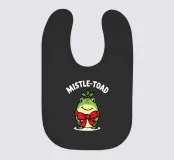 Un allegro rospo verde è ornato da un festoso fiocco rosso, seduto felicemente sotto la scritta "Mistle-Toad". La scena suggerisce un tema natalizio giocoso, con il vischio posizionato sopra la testa del rospo.