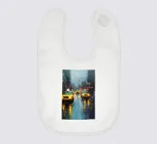 Uno straordinario dipinto digitale di una strada cittadina piovosa, con gli iconici taxi gialli che si riflettono sul marciapiede bagnato. I semafori sfocati e le insegne al neon creano una scena lunatica e suggestiva, che cattura l'essenza della vita e del movimento urbano.