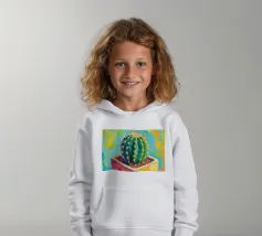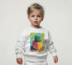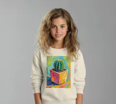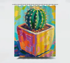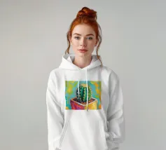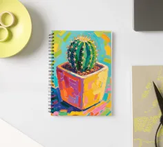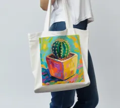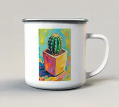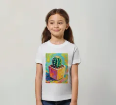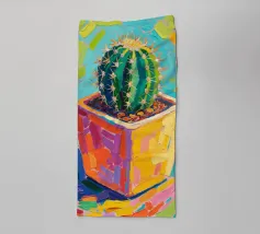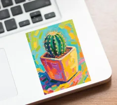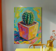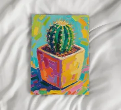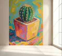 Piccolo cactus in vaso a forma di cubo con pittura fauvismo stile arte