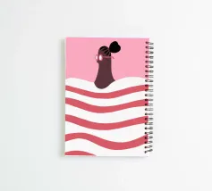 Motivo elegante dipinto a mano di una donna con occhiali e camicia a righe rosse.