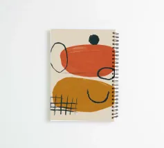 Una composizione astratta e minimalista di forme organiche in terracotta, beige e nero, con dettagli strutturati. Lo stile è moderno, terroso ed equilibrato.