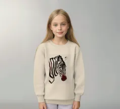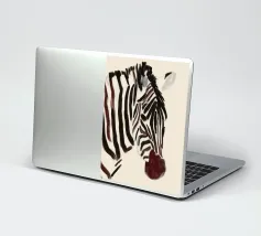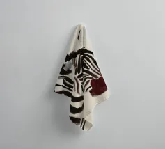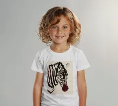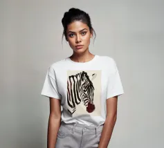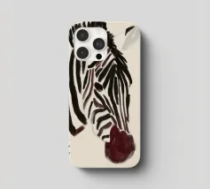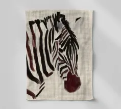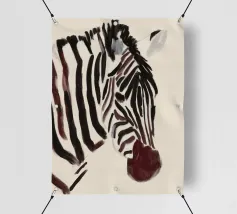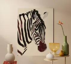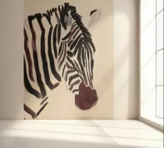 Un semplice ritratto di una zebra, con strisce audaci dipinte in tonalità morbide e terrose.