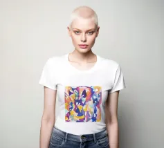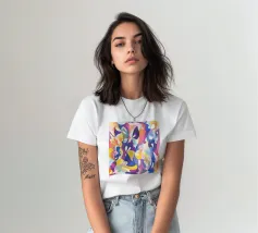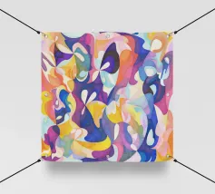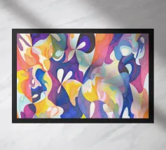 Design geometrico audace e dinamico, pieno di colori vivaci e accattivanti forme colorate, motivo multicolore, colori blu, arancione, giallo, viola. Aggiunge energia istantanea a qualsiasi spazio o abbigliamento con la sua estetica moderna e giocosa. Ideale per gli amanti dell'arte astratta, della teoria del colore e dell'arredamento di design Motivo versatile che si adatta a qualsiasi cosa, dalle stampe ai cuscini alle custodie per il telefono Un grande regalo per creativi, designer o chiunque ami lo stile audace ed espressivo
