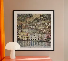Albero e architettura: Ritmi" (1920) di Paul Klee fonde l'organico e il costruito in un'unica sinfonia visiva. Attraverso ritmi astratti, linee strutturate e morbide tonalità terrose, Klee evoca la tranquilla armonia tra natura e architettura. Una composizione meditativa che riflette equilibrio, crescita e ordine in un linguaggio modernista unico.