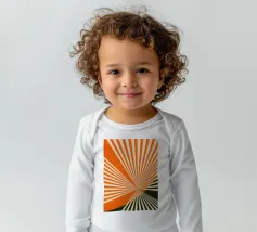 Linee radianti in tonalità terrose come il verde, il marrone e l'arancione si estendono da un cerchio centrale, creando un effetto a raggiera. Il design è caratterizzato da un'estetica retrò con motivi simmetrici e una tavolozza di colori rilassanti.