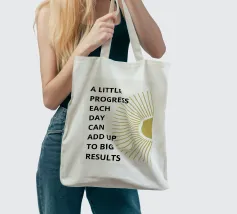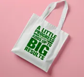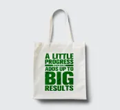 "Arte tipografica d'ispirazione con la frase 'A LITTLE PROGRESS EACH DAY ADDS UP TO BIG RESULTS' (Un piccolo progresso ogni giorno porta a grandi risultati) in grassetto verde, con caratteri rovinati su uno sfondo bianco pulito, che trasmette un messaggio di perseveranza e realizzazione!",