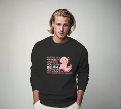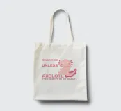 Un simpatico axolotl rosa è raffigurato con un messaggio di testo scherzoso che consiglia di essere sempre un axolotl, se possibile. Lo sfondo è di una tonalità scura che contrasta con il testo e la creatura chiari.