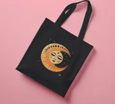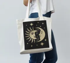 Questo disegno nero e astratto della luna celeste, circondato da stelle scintillanti, conferisce un tocco artistico e tagliente e combina il misticismo del cielo notturno con uno stile contemporaneo e all'avanguardia, rendendolo un pezzo di spicco per qualsiasi spazio e oggetto.