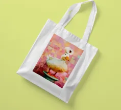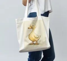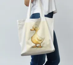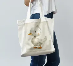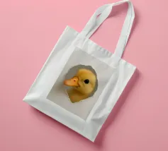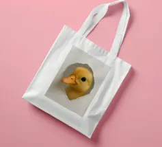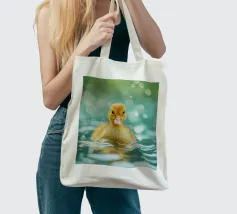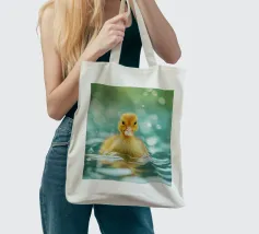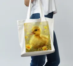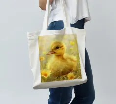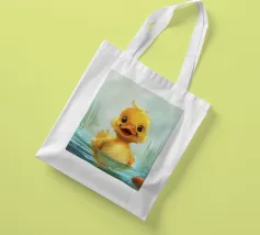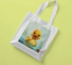 Un simpatico anatroccolo fa capolino da sotto un morbido asciugamano bianco. Le sue soffici piume gialle e i suoi occhi curiosi creano una scena adorabile e affascinante.
