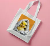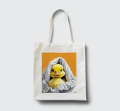 Un simpatico anatroccolo fa capolino da sotto un morbido asciugamano bianco. Le sue soffici piume gialle e i suoi occhi curiosi creano una scena adorabile e affascinante.