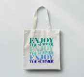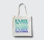 Bellissimo motivo tipografico per le calde giornate estive. Lettere dalla forma estetica e discreta che rappresentano l'affermazione "Enjoy the summer". Colori del mare molto armoniosi. Le vibrazioni della spiaggia si fanno sentire.