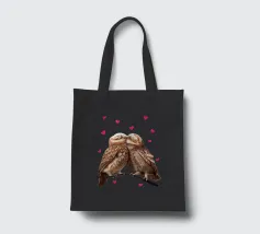 Simpatici gufi dipinti ad acquerello su un ramo con un cuore allegato.