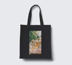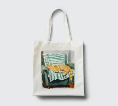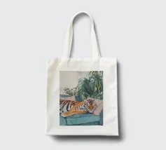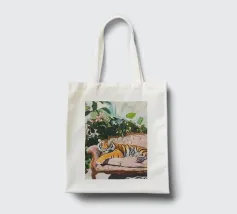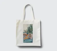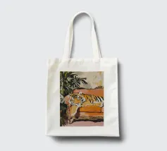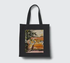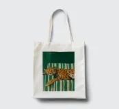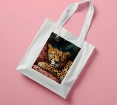 Un'opera d'arte serena e stravagante di un ghepardo che sonnecchia pacificamente su un divano vintage a righe bianche e verdi. I motivi vivaci e la postura accogliente del grosso felino creano un contrasto sognante e spiritoso tra la natura selvaggia e la rilassata vita domestica. Perfetto per gli amanti degli animali, i collezionisti d'arte eclettica e gli appassionati di estetica d'interni giocosa.