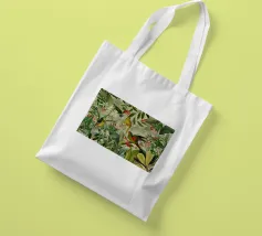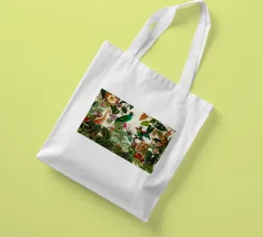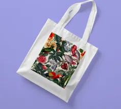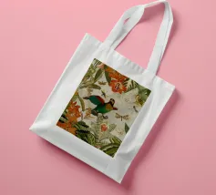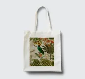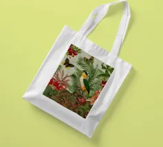 Un vivace collage di illustrazioni vintage con bellissimi e colorati pappagalli verdi appollaiati in mezzo a un lussureggiante paesaggio floreale. La scena è ricca di fascino tropicale ed esotico, poiché i pappagalli si stagliano sullo sfondo del fogliame vibrante della giungla. Intorno a loro sbocciano incredibili fiori esotici, mentre i rami di palma aggiungono un tocco di eleganza tropicale. Sullo sfondo, una mappa d'epoca emerge dolcemente, aggiungendo un senso di avventura e di viaggio. Questa miscela armoniosa di natura, fauna selvatica e fascino vintage crea un disegno senza tempo, perfetto per gli amanti dei paesaggi esotici e dell'arte nostalgica.