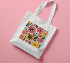 Una bella macchia di fiori selvatici stilizzati e stravaganti è illustrata in un affascinante stile ispirato all'arte popolare, con un delizioso mix di colori e forme che irradiano gioia e bellezza naturale.
