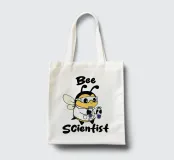 Una simpatica ape in camice e occhiali tiene in mano due provette piene di pozioni colorate. L'illustrazione gioca sul gioco di parole "Bee Scientist", unendo scienza e simpatia in un'unica immagine. Perfetto per chi ama la biologia, la chimica o semplicemente le api con un look da scienziato!