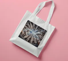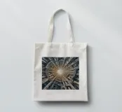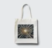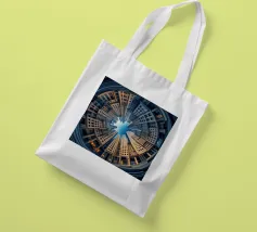 Un design architettonico intricato che forma una struttura a tunnel con simmetria a raggiera, che converge verso una luce incandescente al centro. La prospettiva crea profondità e un'estetica ipnotica e futuristica.