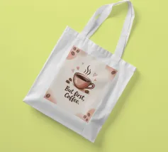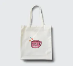 Illustrazione moderna e minimalista di una tazza di caffè rosa con un testo di citazione per tutti gli amanti del caffè